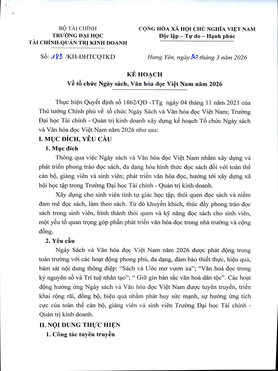 THƯ VIỆN TRƯỜNG ĐẠI HỌC TÀI CHÍNH - QUẢN TRỊ KINH DOANH HƯỞNG ỨNG CHÀO MỪNG NGÀY SÁCH VÀ VĂN HÓA ĐỌC VIỆT NAM NĂM 2022